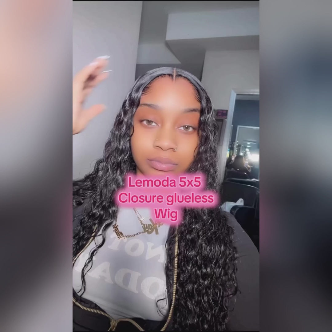 Lemoda 5x5 Lace Closure Wigs Water Wave Skinlike HD Glueless Wigs Pre Cut Lace