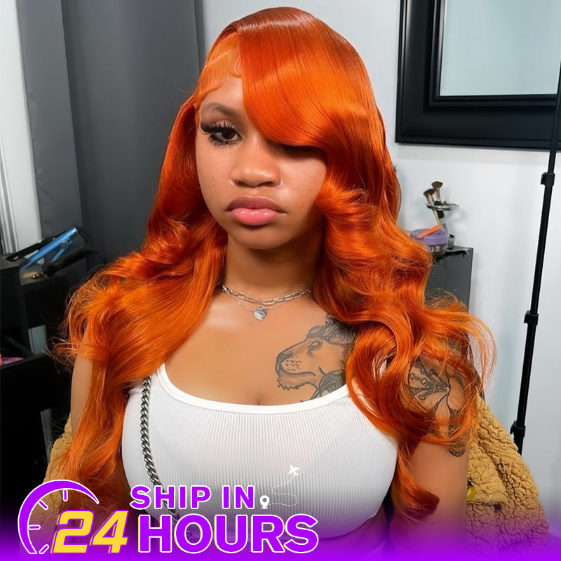 Straight Hair 13x4 Lace Front Wig Orange Ginger Body Wave Human Hair Wigs