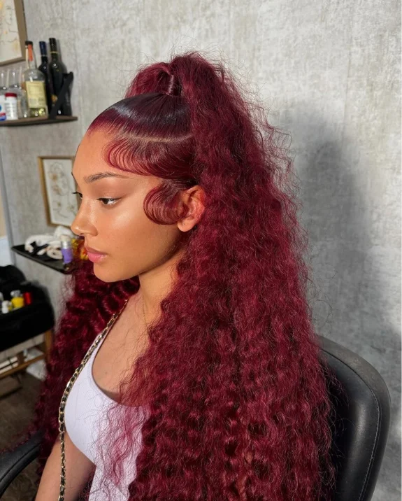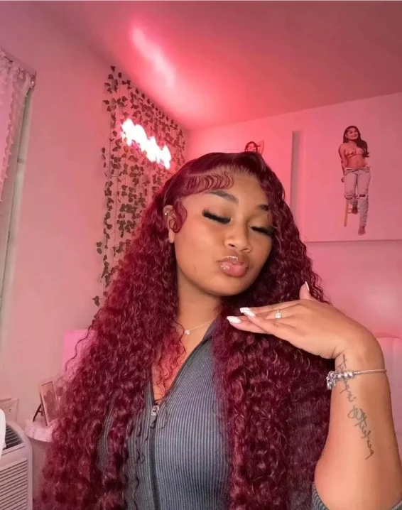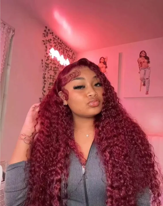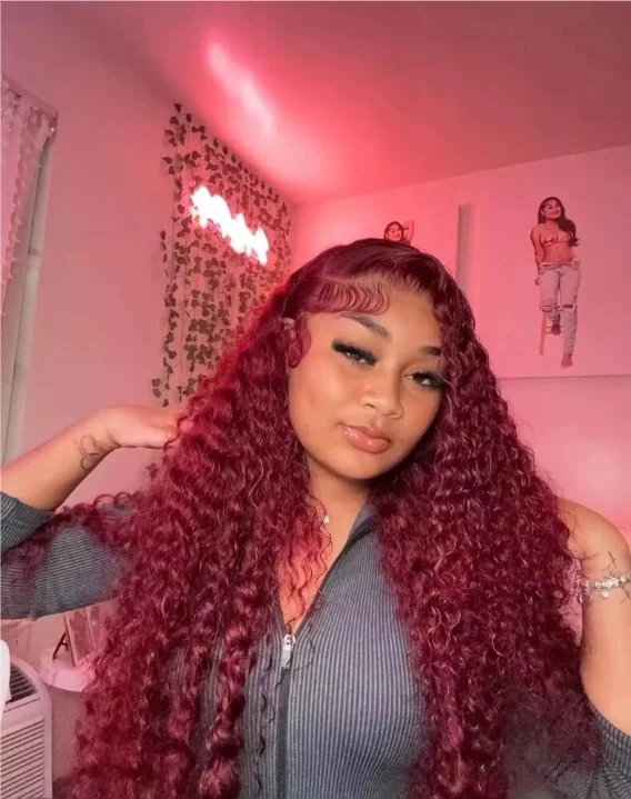 Deep Wave 99J Burgundy 13x4 Lace Front Wig Water Wave Human Hair Wigs
